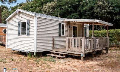 Comfort mobile home 27.5m² (2 bedrooms) + semi-covered wooden terrace 11m²