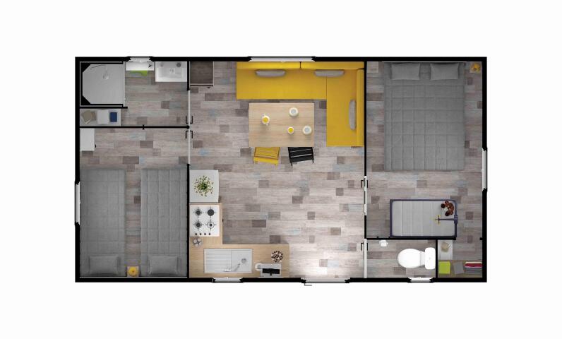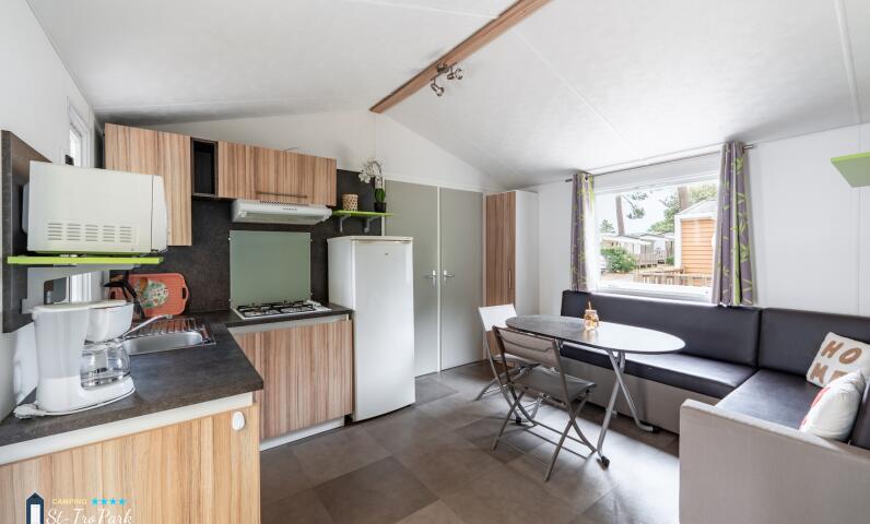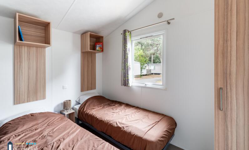 Want to discover the accommodation Mobile home Confort - 27.5m² (2 bedrooms) + 11m² semi-covered wooden terrace ?