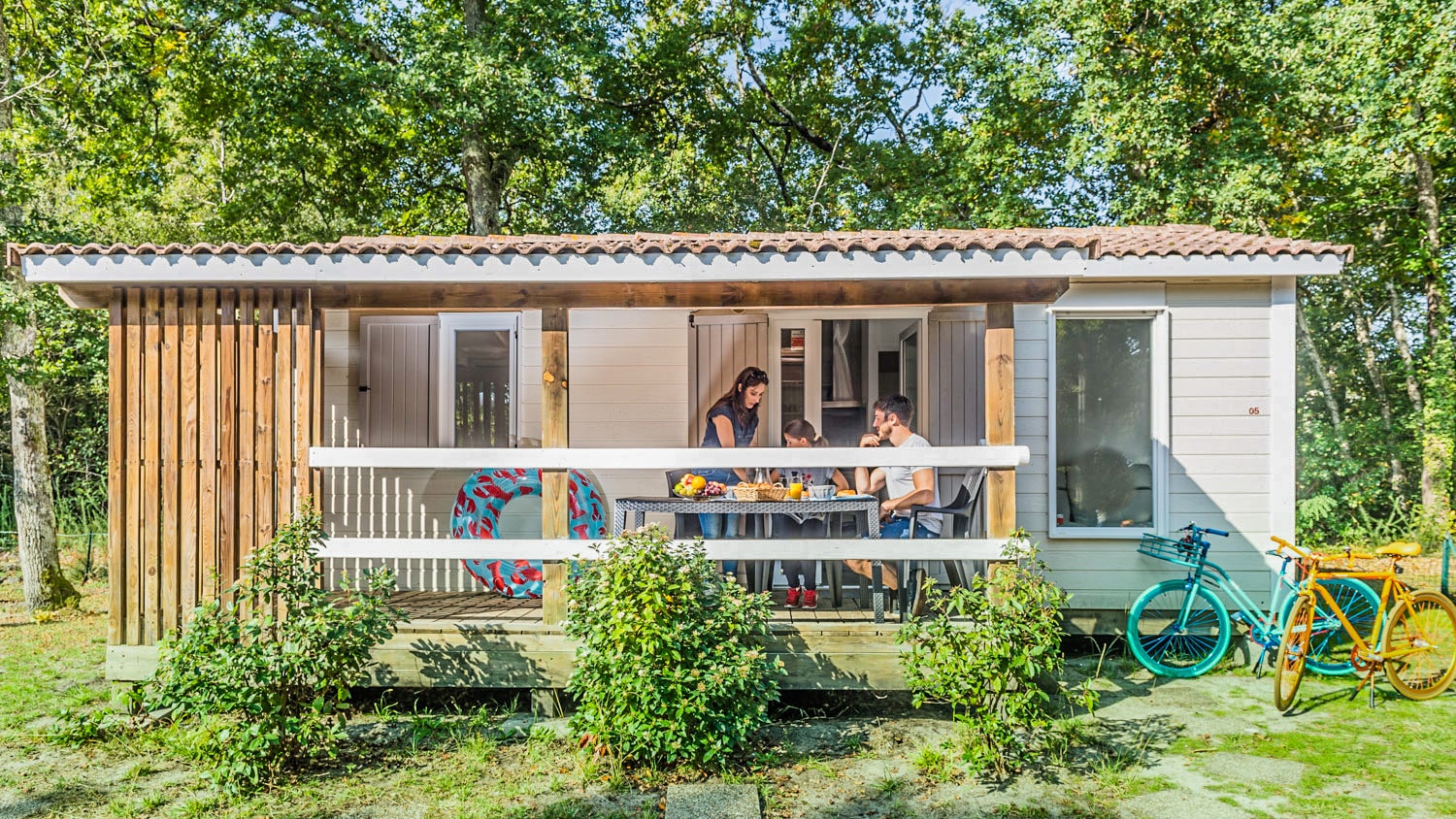- Semi-covered wooden terrace