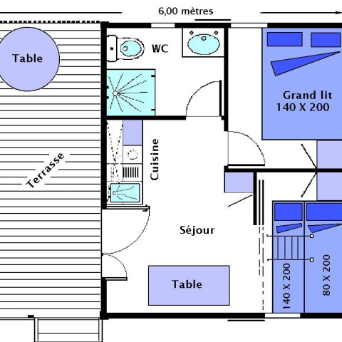 - 2 bedrooms: 1 bed of 160x190cm and 2 beds of 80x190cm. Sheets are provided but the beds are not made on arrival.
