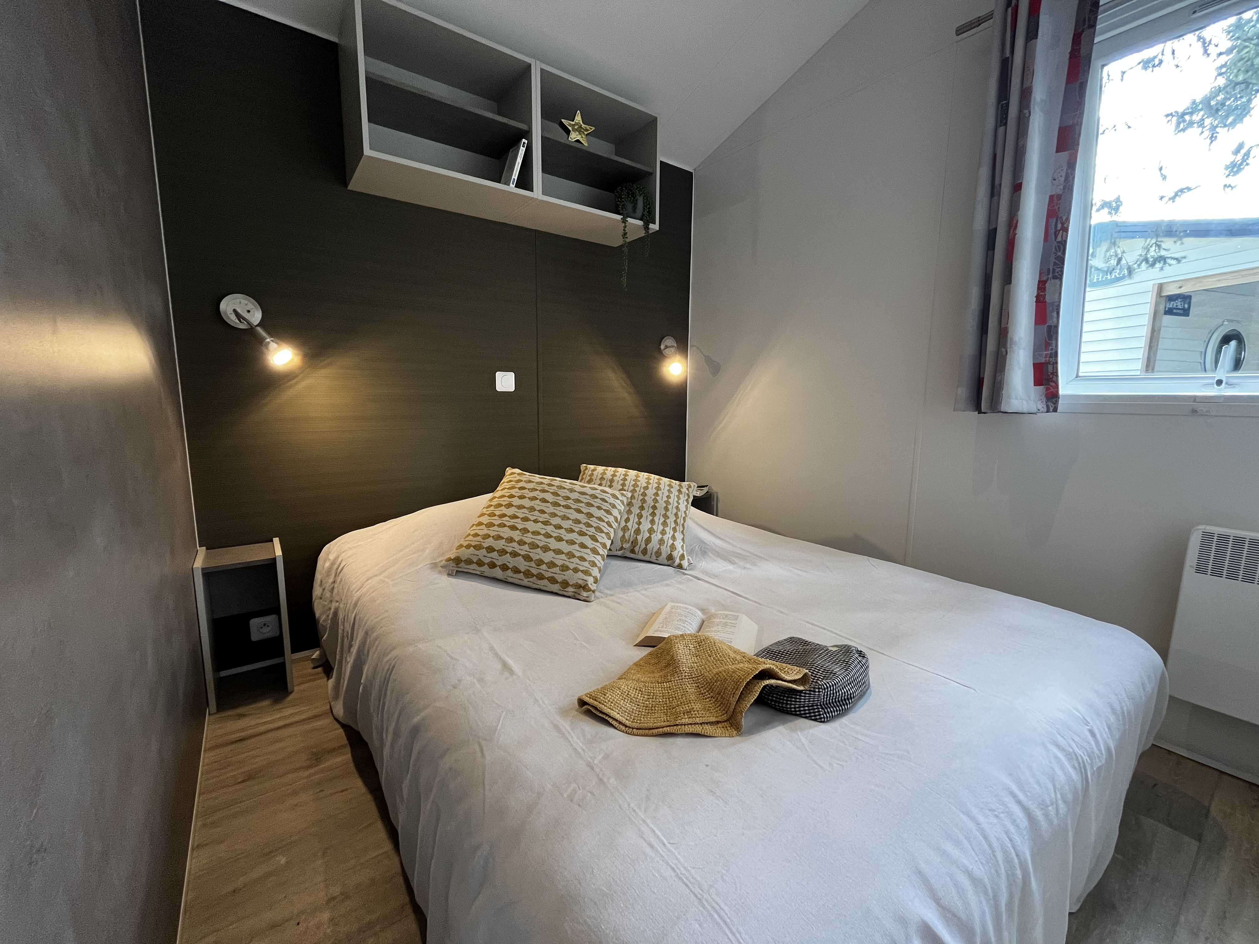 - Double bed (140x190) (duvet and pillows provided)