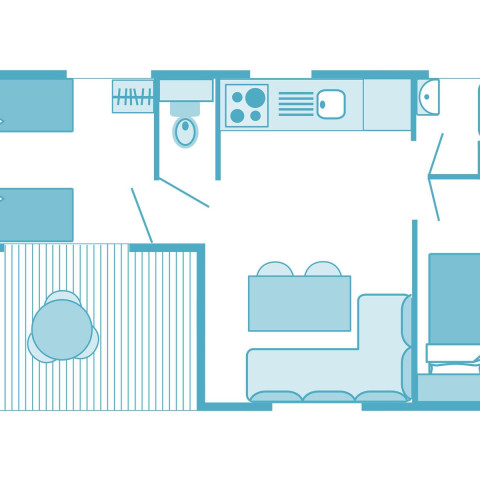 Discover our luxurious mobile home, situated in a green pedestrian area near the lagoon, with a wide range of services included. Everything is designed to ensure you have a pleasant holiday. Here’s an overview of the amenities available in this rental to help you plan your stay. We’re here to assist with any additional information you may need.