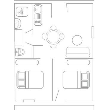 - 2 Single bed (80x190) (duvet and pillows provided)