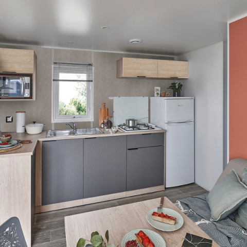 This cocoon will make you feel snug as a bug in a rug. The mobile homes at the Sunêlia Le Petit Bois campsite are designed for 2 to 4 people and are installed on plots of at least 80 m². Ideal for couples and small families, our mobile homes all have a terrace and parking for your vehicle.