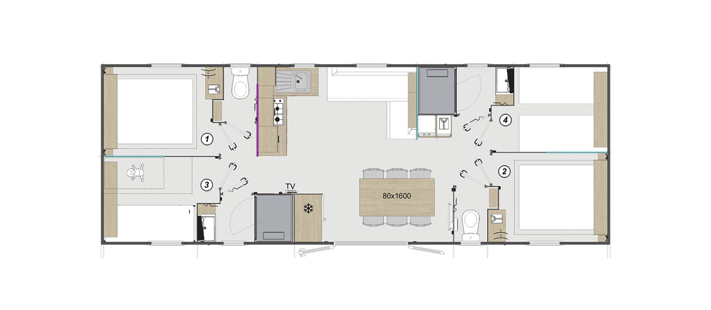 Find all the sanitary comfort, with its 2 bathrooms and separate toilets directly in the mobile home.