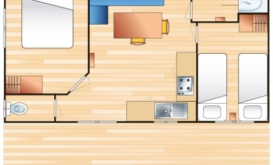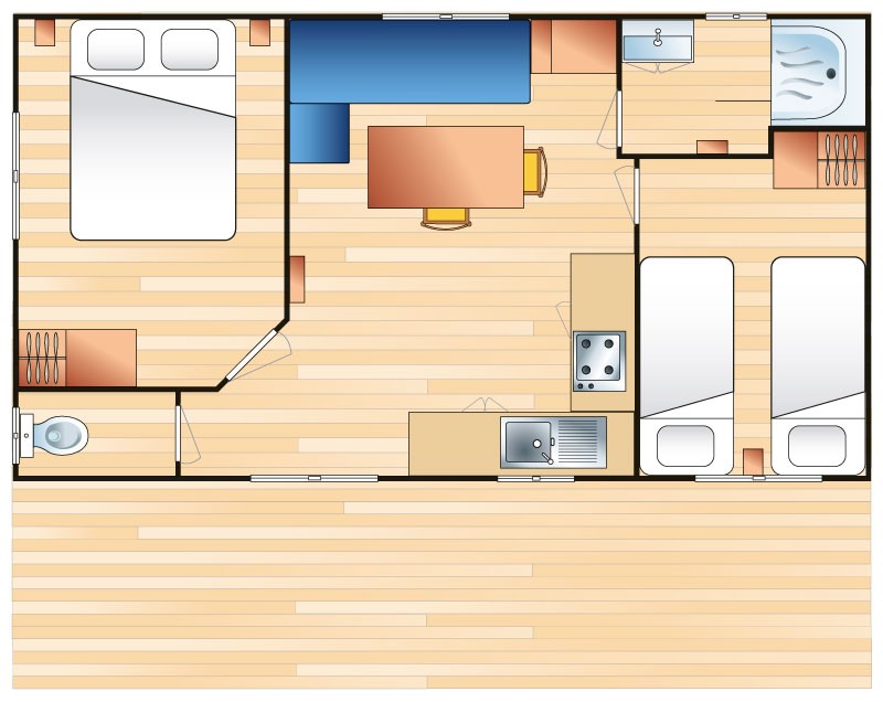 - 2 Single bed (80x190) (duvet and pillows provided)