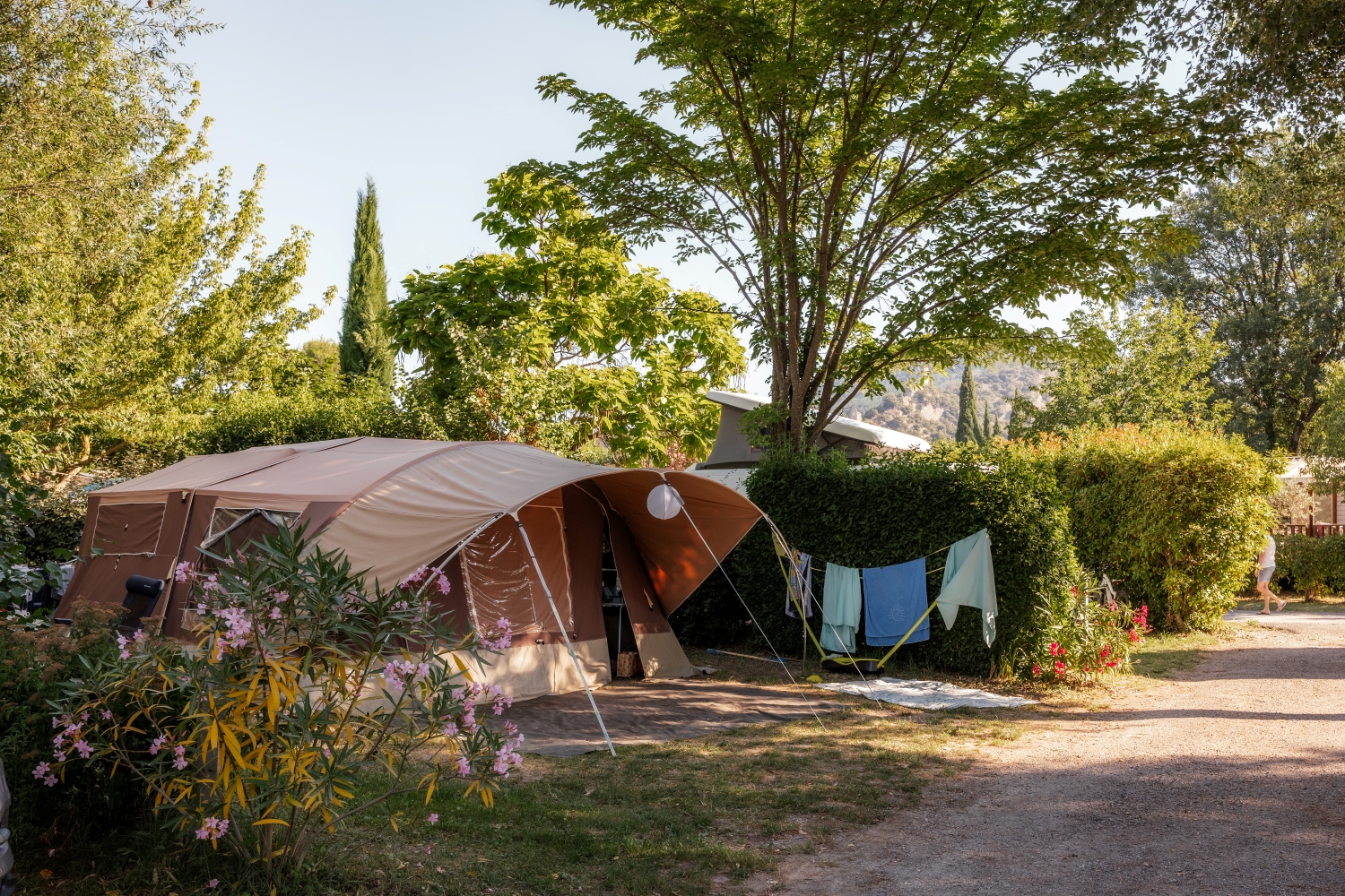 DiscoverPrestige pitch 130m² with private sanitary block Château Arnoux