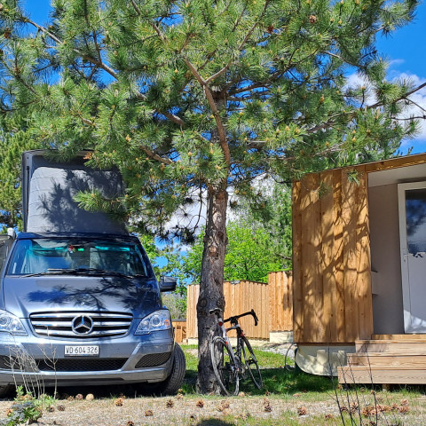 Fancy staying on a camping pitch with private sanitary facilities and a view of the Alps?