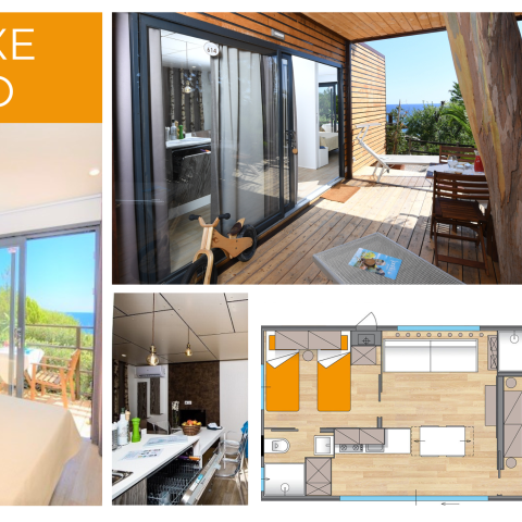 For a family holiday or a getaway with friends, opt for the Sunêlia Prestige Family Plus. Surrounding by flowers and trees, this mobile home is the ideal cosy rental for your family holiday. It is perfectly blended into the surrounded landscaped gardens, for an exceptional holiday in Italy.