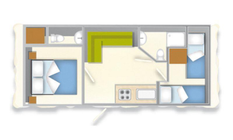 - 2 Single bed (80x190) (duvet and pillows provided)