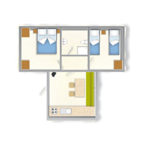 - 2 Single bed (80x190) (duvet and pillows provided)