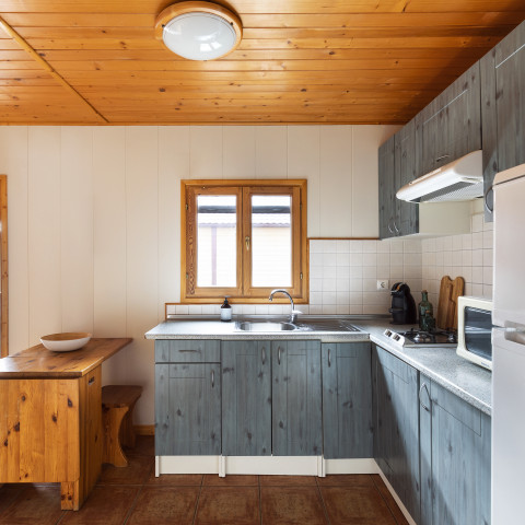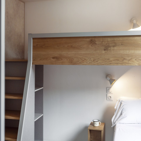 Our wooden cottages invite you to experience silence, design, and intimacy. In "Basic couple" or "Family" mode, each mobile home has a private terrace, like an extension of your "home." Equipped kitchen and private bathroom, the layout and spaces combine to create areas of privacy and others for sharing. The guiding thread? Natural materials, organic textures, a sleek style open to the outdoors.