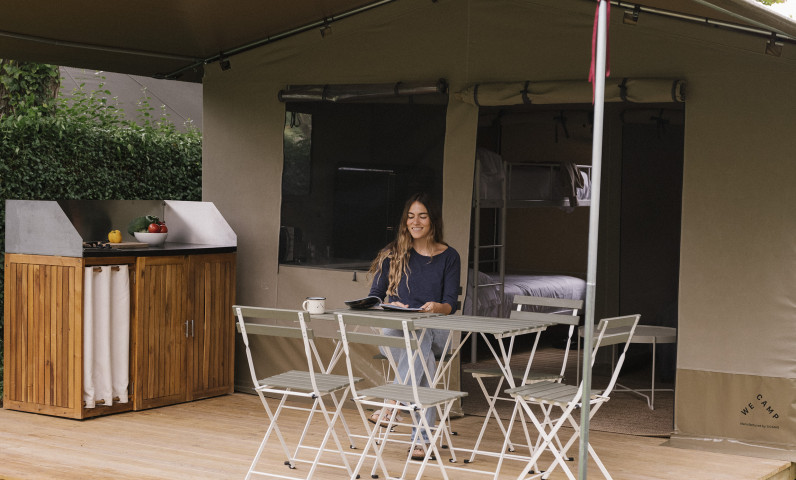 Our Cottage Family does not have a private bathroom. For the authentic camping experience for families or large groups. For those who miss bringing their own tent we have this accommodation that allows you to enjoy the authentic camping experience with a kitchen. It sleeps up to 4 people and has a double bed and 2 singles in bunk bed format. It has a kitchen with all the necessary utensils for your stay.