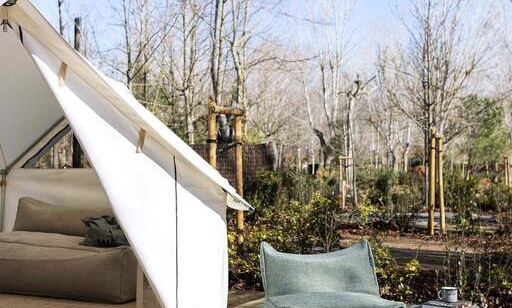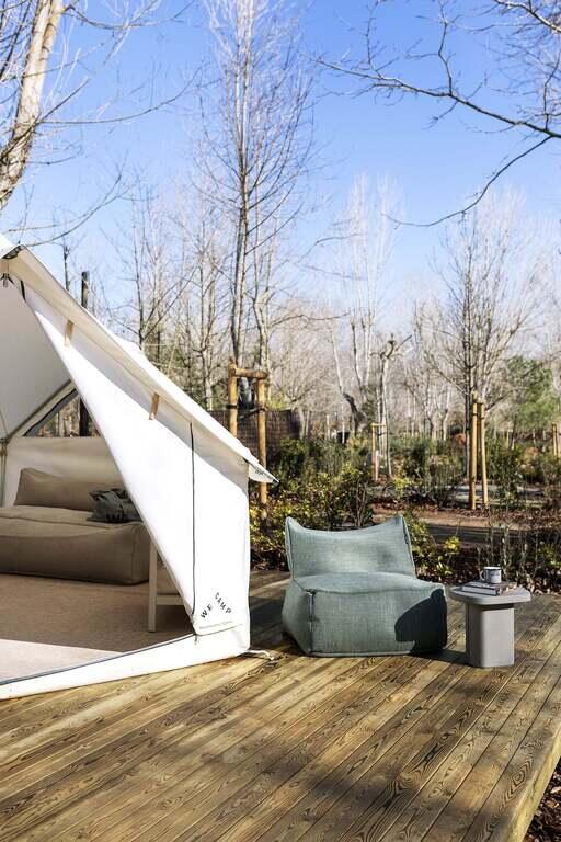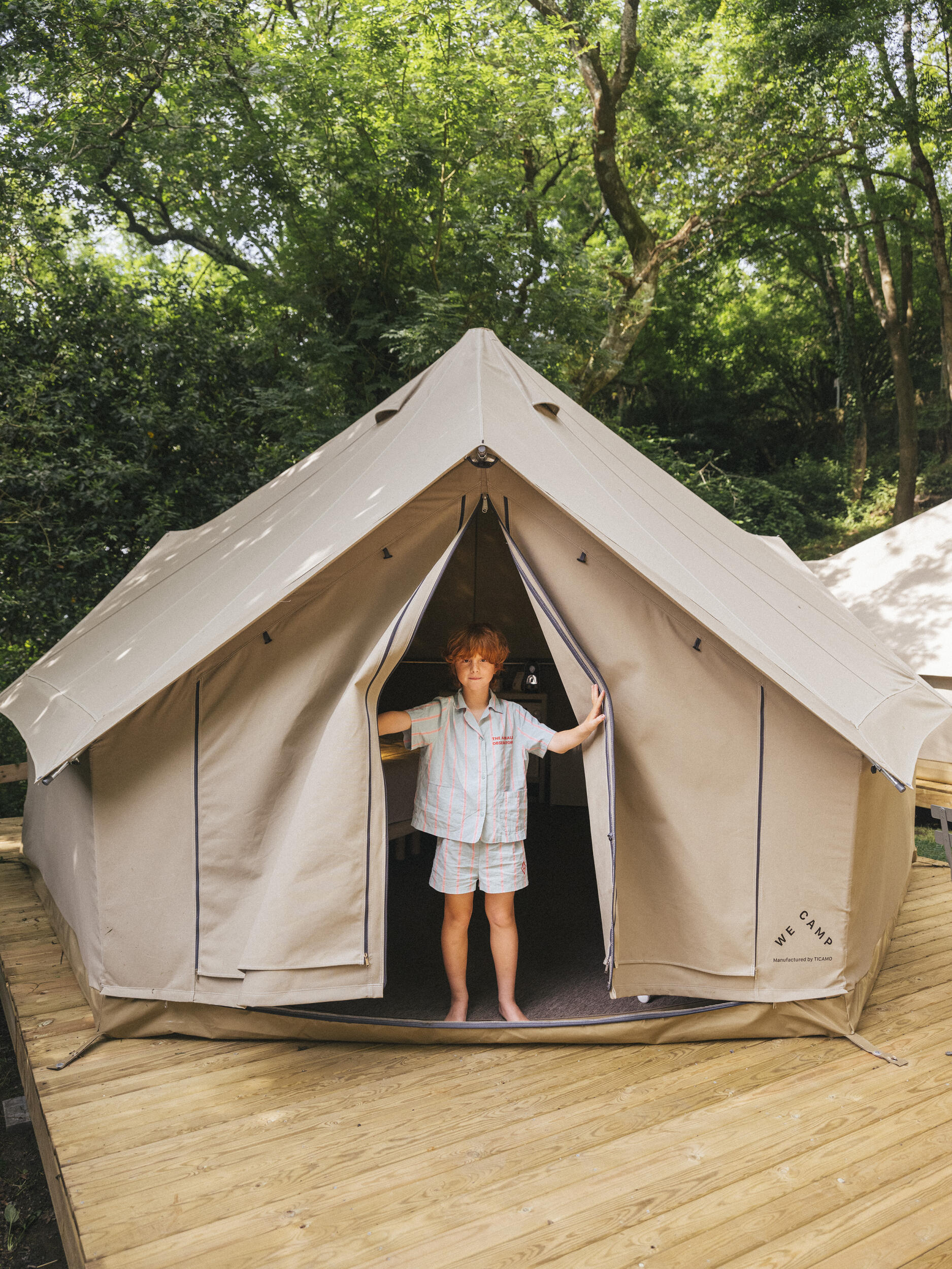 Our Bell Tent is great for couples looking for something different in the middle of nature at the campsite, with a touch of luxury. It doesn't have a kitchen or private bathroom, but the public toilets are just a few metres from the tent. The best thing about it? It has a comfortable double bed, mini fridge, kitchenware and a microwave.