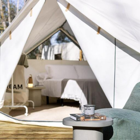 Experience a hassle-free camping experience designed for two people, immersed in nature. Our comfortable and discreet tents are strategically located in an area where adults-only accommodation is available. Similar to a hotel, but better: with air conditioning, full private bathroom, amenities, as well as sheets and towels included. It is ideal and designed for couples who want to have a different experience in nature with the utmost luxury. We do not allow dogs or babies in this tent.