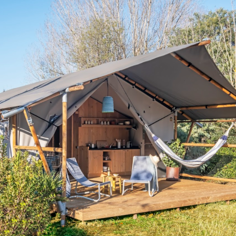 Whether you’re testing out a lightweight Bell Tent with its wonderfully soft bedding, or a Family + mobile home, specially designed for groups, you’ll love the feeling of being at one with nature, whatever room you're in. You’ll find everything you need: equipped kitchens and bathrooms, a cosy terrace and a master bedroom. Some properties even have a dressing room.