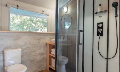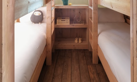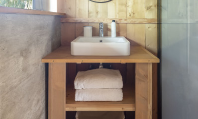 Authenticity and comfort merge in our renovated Lodges, offering spacious, cosy and versatile accommodation. Enjoy two bedrooms that can accommodate up to 6 guests: a master bedroom with double bed, air conditioning and dressing room, and another bedroom with two bunk beds. A modern private bathroom complete with amenities and a kitchen is fully equipped with everything you need: from a fridge with freezer to a microwave, ceramic hob, kitchenware and a Nespresso capsule coffee machine.