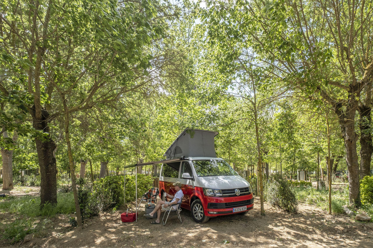 Places delimited with hedge. Toilets with hot water. Washing machine. Playground and sport area. Swimming pool. Free wifi area. (TENTS ARE NOT ALLOWED)