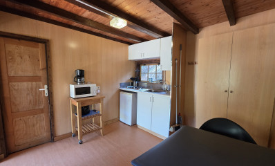 Kitchen: gaz baking sheet, fridge, micro wave, cutlery, crockery, kitchen utensils, electric coffee maker.
