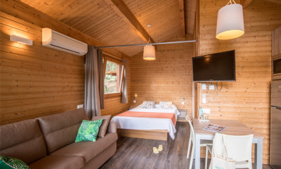 No parking space next to the accommodation, access on foot via stairs, 1 free car per accommodation, parking nearby on the campsite.