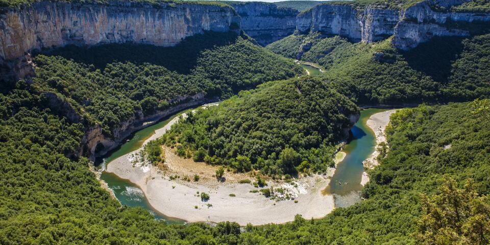 Esculpido por sus aguas translúcidas, explora el profundo cañón de las Gargantas del Ardèche . Con una extensión de unos treinta kilómetros, rema a través de los paisajes en canoa o kayak . Un auténtico punto de interés, dirígete al Pont d'Arc . Este arco natural de 60 metros de altura se extiende sobre el río y lo domina.