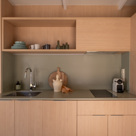 Un camino de arena te lleva tranquilamente hasta tu hogar dulce hogar. Desde el primer vistazo, comprenderás que en este rincón de Cataluña, la vida ocurre al aire libre. Las amplias aberturas de las casas móviles y las líneas depuradas del mobiliario se centran en lo esencial: la naturaleza. Los espacios se combinan y se adaptan a tu estilo de vida y tus deseos. Con alojamientos de hasta 35 m², el estilo minimalista no resta calidez a la hospitalidad, al contrario. Los materiales y colores se inspiran en lo vegetal y mineral del entorno, integrando así las viviendas en el paisaje.