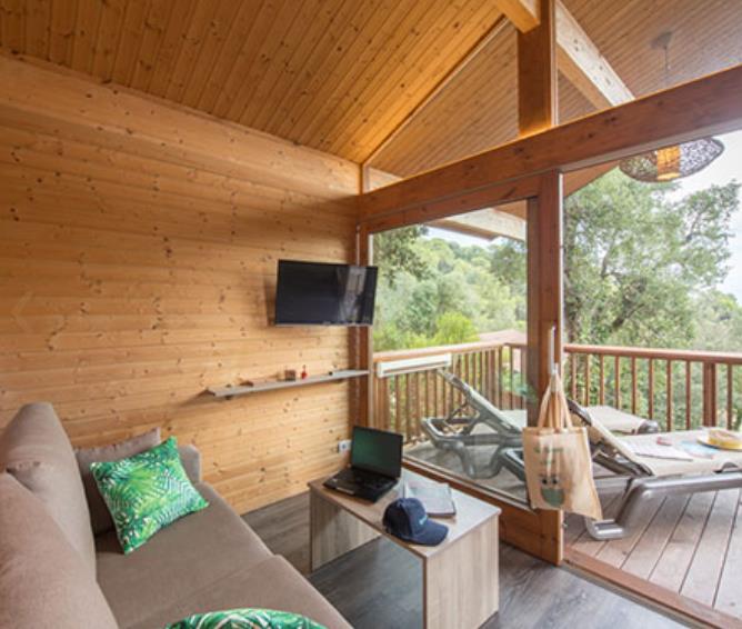 Los Ecolodge Prestige de 2 habitaciones, es para un aforo de 5 personas, están situados a la entrada del camping, en la parte más tranquila del camping. Vista al jardín.