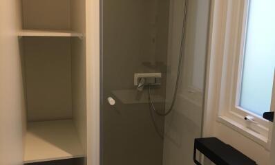 Un baño con ducha y aseos separados.