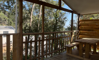 El Cottage Prestige de 2 habitaciones (31m²) es un modelo para un aforo de 4 personas. Vista hacia el jardín.