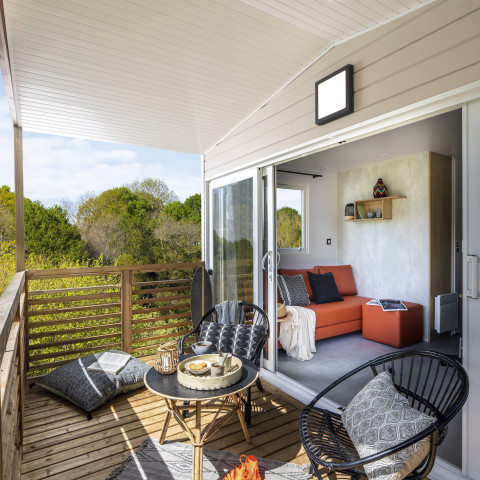 Si eres de los que prefieren una estancia más original, nuestros alojamientos turísticos te ofrecen la oportunidad de vivir una experiencia en armonía con la naturaleza mientras disfrutas de los servicios de un camping junto al mar. Imagínate en la terraza de tu lodge rodeado de vegetación, contemplando una puesta de sol bretona después de un día de aventuras.