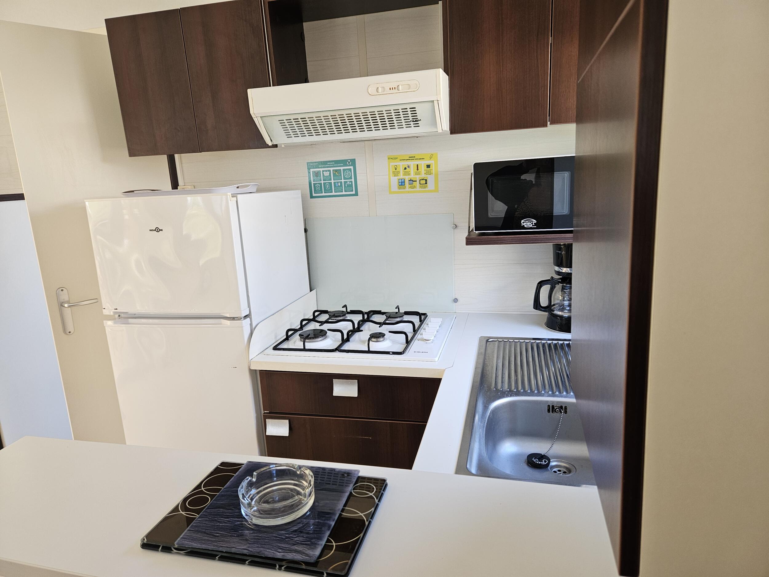 Cocina abierta equipada con utensilios de cocina.