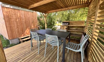- Terraza de madera semicubierta