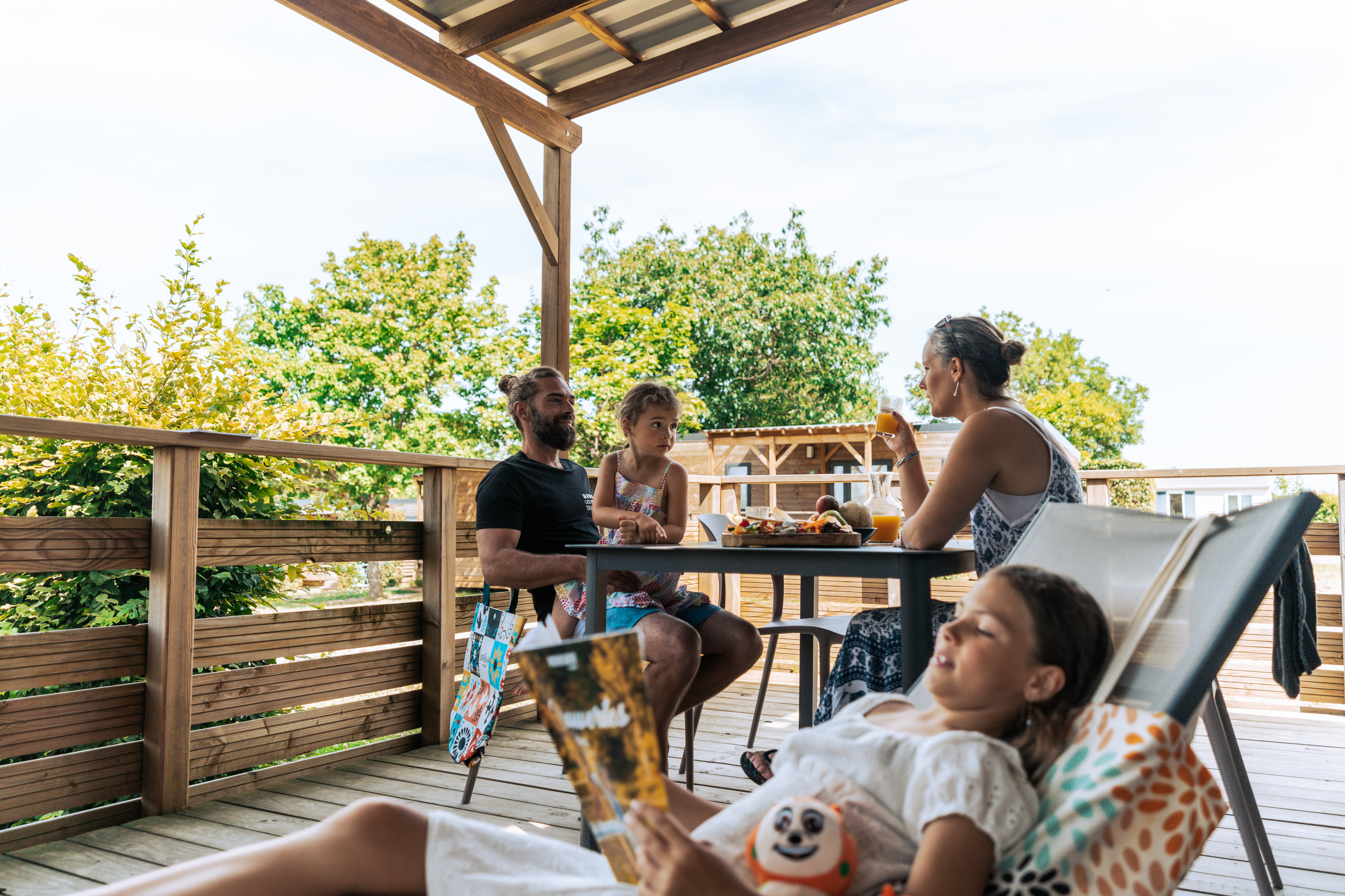 Instálate en uno de nuestros confortables mobil-homes. El camping Les Nids du Lac ofrece alojamientos amplios y acogedores para familias que buscan un lugar funcional.