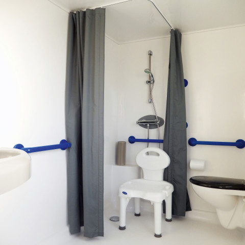 En medio del recinto arbolado del camping están los baños comunes. Son funcionales y están cerca de las parcelas. Además, están adaptados para las personas con movilidad reducida