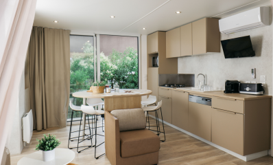 Disponibles en todos los alojamientos de las gamas Luxury y Prestige, estas camas de alta gama proporcionan a su estancia una sensación de suavidad incomparable. Con la espuma viscoelástica de alta densidad, podrá dormir plácidamente con las camas Sunêlia.