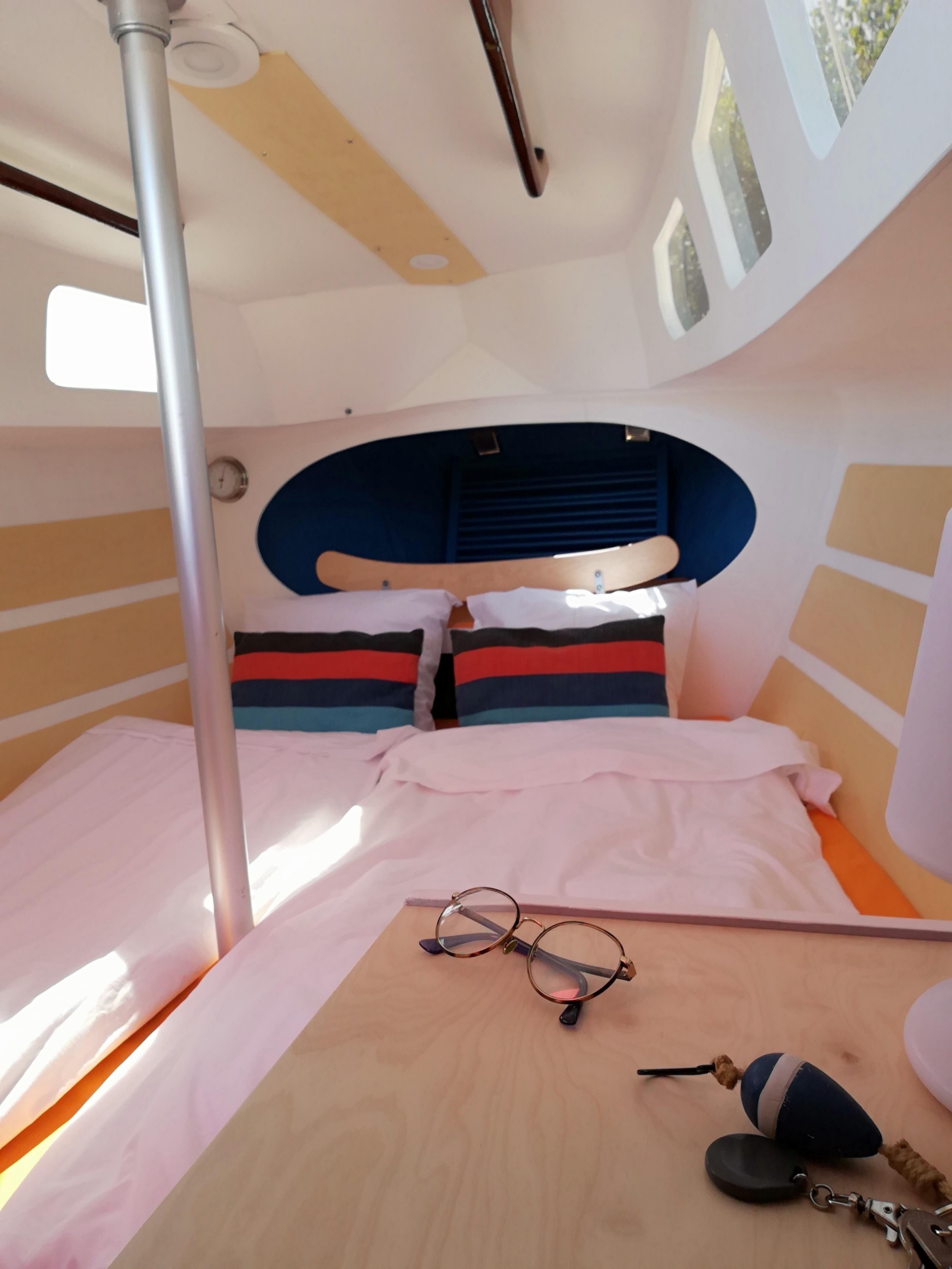 Este barco (un velero totalmente restaurado) ofrece una experiencia inusual: un crucero inmóvil. Se ofrece sin cuarto de baño ni cocina. Dispone de dos camarotes separados (uno con 2 camas individuales y otro con una cama doble y una mesa).