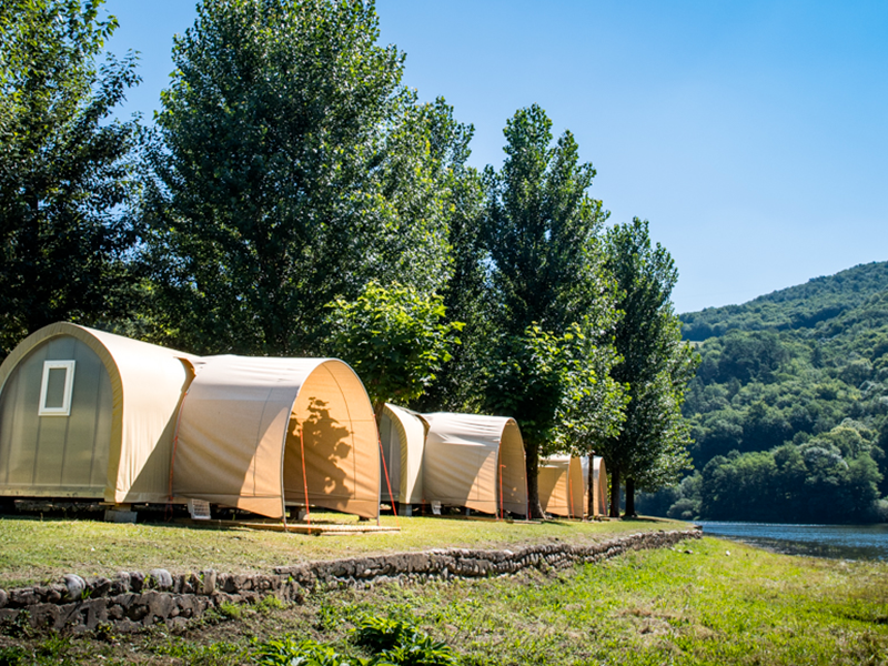 A los amantes del glamping les encantará este tipo de tienda, donde podrán disfrutar plenamente de su experiencia de acampada, con el máximo confort, a orillas del río Dordoña.