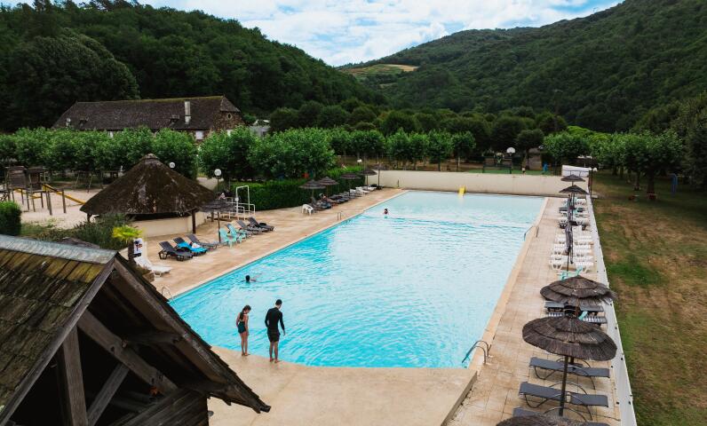 Con sus impresionantes vistas del castillo y su entorno verde a orillas del río Dordoña, sumérgete en la piscina exterior climatizada de 336 m². Un equilibrio perfecto entre relajación, ocio acuático e inmersión en plena naturaleza del departamento de Corrèze; disfruta plenamente de tus momentos en el agua.