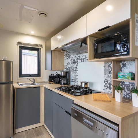 Nuestro camping de 4 estrellas cuenta con mobil homes modernas, luminosas y perfectamente dispuestas, ¡donde no falta de nada! Cocina funcional, cómodas camas de espuma viscoelástica, aire acondicionado, terraza a la sombra, barbacoa... aquí todo está pensado para garantizar la comodidad de las familias. Tanto si viajas en pareja, como con amigos o toda la familia, nuestras mobi homes te acogen en espacios totalmente equipados para que cada uno encuentre su sitio y disfrute de la estancia a su antojo.