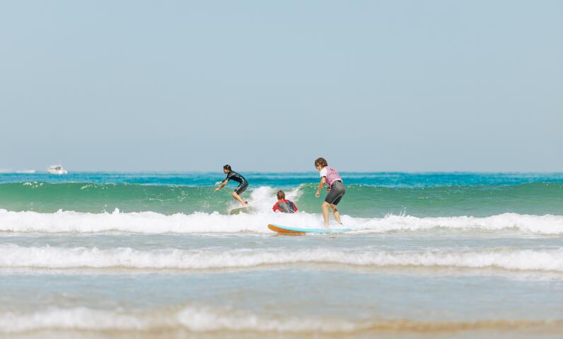 A partir del mes de mayo, sumérgete en el espacio acuático exterior climatizado. En función de tus deseos, podrás alternar entre una sesión de aquagym o el descubrimiento de la fauna acuática con nuestros animadores. Después de una sesión de surf, relájate tomando el sol junto al agua, mientras tus hijos se divierten de forma segura en la piscina infantil.
