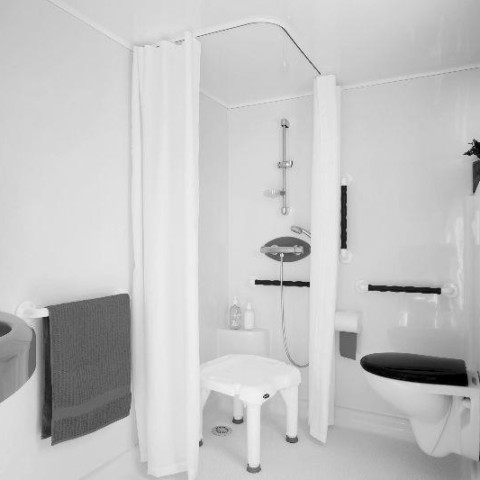 Un bloque sanitario perfectamente integrado en el paisaje le espera en el País Vasco. Dispone de cabinas de ducha, lavabos, aseos y cabinas adaptadas para personas con movilidad reducida. También hay una lavandería con lavadora y secadora a su disposición.