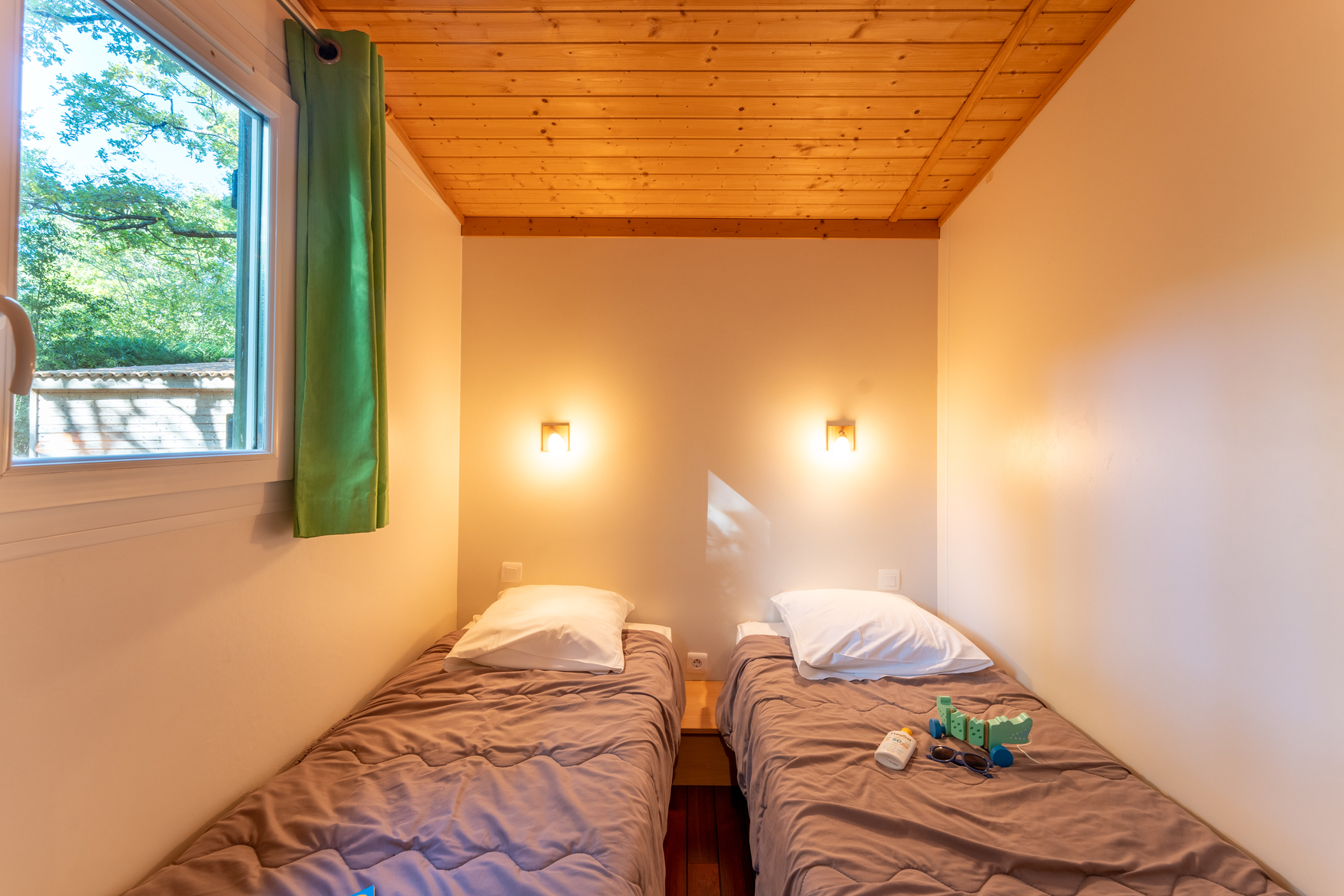 - 2 Cama individual (80x190) (se proporciona el edredón y las almohadas)
