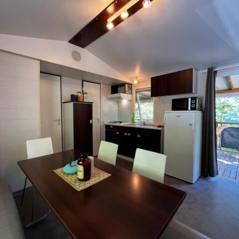 Los alojamientos de gama alta del camping Sunêlia La Source, perfectos para disfrutar a lo grande del marco idílico del lago de Sarrans, os ofrecen una comodidad de un nivel superior. Relájate, aprovecha nuestro paquete de bienvenida con ropa de hogar y camas hechas a la llegada, lo único que tienes que hacer es relajarte.