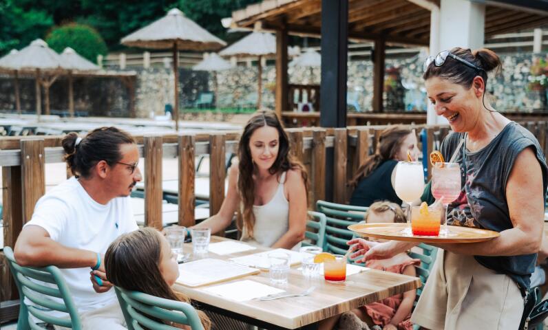 Abiertos todos los días durante el periodo de apertura del camping, podrás alternar entre una pausa refrescante en el bar y un momento gastronómico en el snack. Para tus veladas en familia, acomódate en la terraza del restaurante y saborea algunos platos locales como las ensaladas de Les Cévennes.