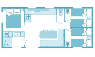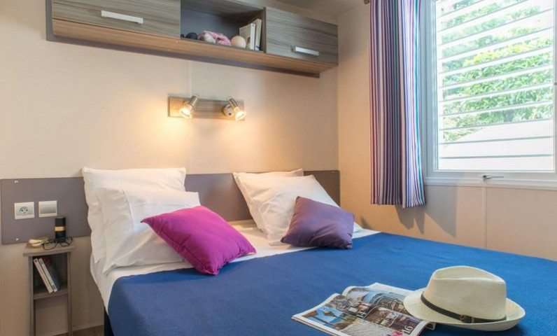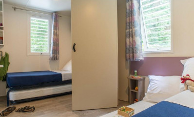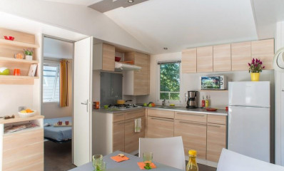 Mobil-home espacioso y climatizado con terraza, perfecto para familias numerosas o vacaciones con amigos hasta 6 personas.