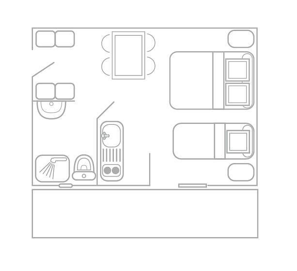 - 1 Cama individual (70x190) (edredón y almohada incluidos)