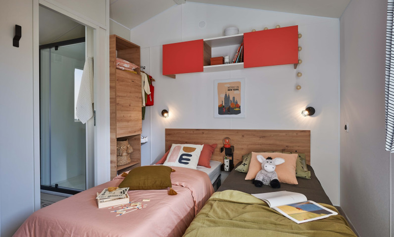 Porque en Sunêlia, camping rima con confort, concentramos todos nuestros esfuerzos en ofrecer servicios hoteleros dignos de ese nombre. Durante su estancia, descubra las Sunêlia Beds, modelos de cama únicos en el mundo del alojamiento al aire libre.
