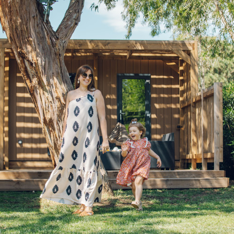 Justo al lado, en la piscina infantil se refrescan los más pequeños. Armados con flotadores y juguetes acuáticos de todo tipo, los niños descubren la vida en el agua, bajo la mirada maravillada de sus padres. La cabaña acuática, el puente y la cascada tótem la convierten en un parque de juegos sin fin.