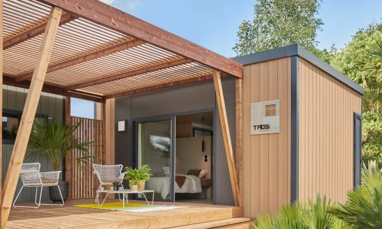 - Terraza de madera con toldo