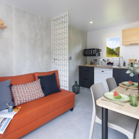 Elegir Sunêlia Les Places Dorées es optar por el lujo de la vida al aire libre. La costa atlántica invita a respirar profundamente y a saborear los beneficios de la naturaleza. En sintonía con tu entorno, podrás disfrutar de las instalaciones de alta gama del camping y del confort de tu alojamiento. Toda la familia se acomoda en la terraza y en el jardín contiguo al mobil-home. Cómodamente instalado en tus muebles de jardín, la tranquilidad te envuelve.